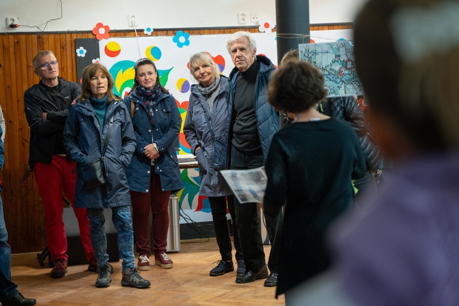 Architektky z jabloneckého spolku PLAC Ida Chuchlíková a Dita Procházková, společně s Jitka Skalická, starostkou jabloneckého Sokola, provedly hosty pomyslnou historickou linkou od založení Tyršových sadů až k vizi budoucí expozice, jejichž název - Hledání ztracené identity - upozorní nejen na historii samotné sokolovny, ale i zrod našeho města, původní obyvatele i důležitou roli okolní krajiny.