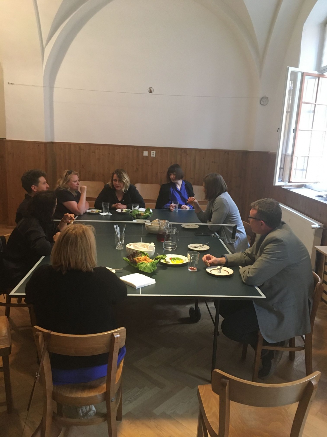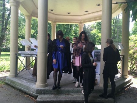 16. června jsme se sešli v parku před sokolovnou se studenty a pedagogy u příležitosti prezetnací jejich uměleckých prací, které byla šity sokolovně a parku na míru.