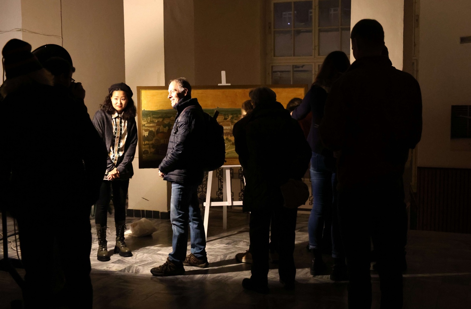 V podvečer 25. listopadu jsme slavnostně odhalili originál obrazu, který unikátním způsobem spojil několik histrických rovin. Podle autorky je jeho hlavní myšlenkou spojení již ztracených budov a krajiny a zviditelnění městské krajiny, kterou měly utvářet. Obraz je fiktivní, ale kompenzuje ztracenou sebeidentifikaci a staví v mysli něco jako pevný pilíř.